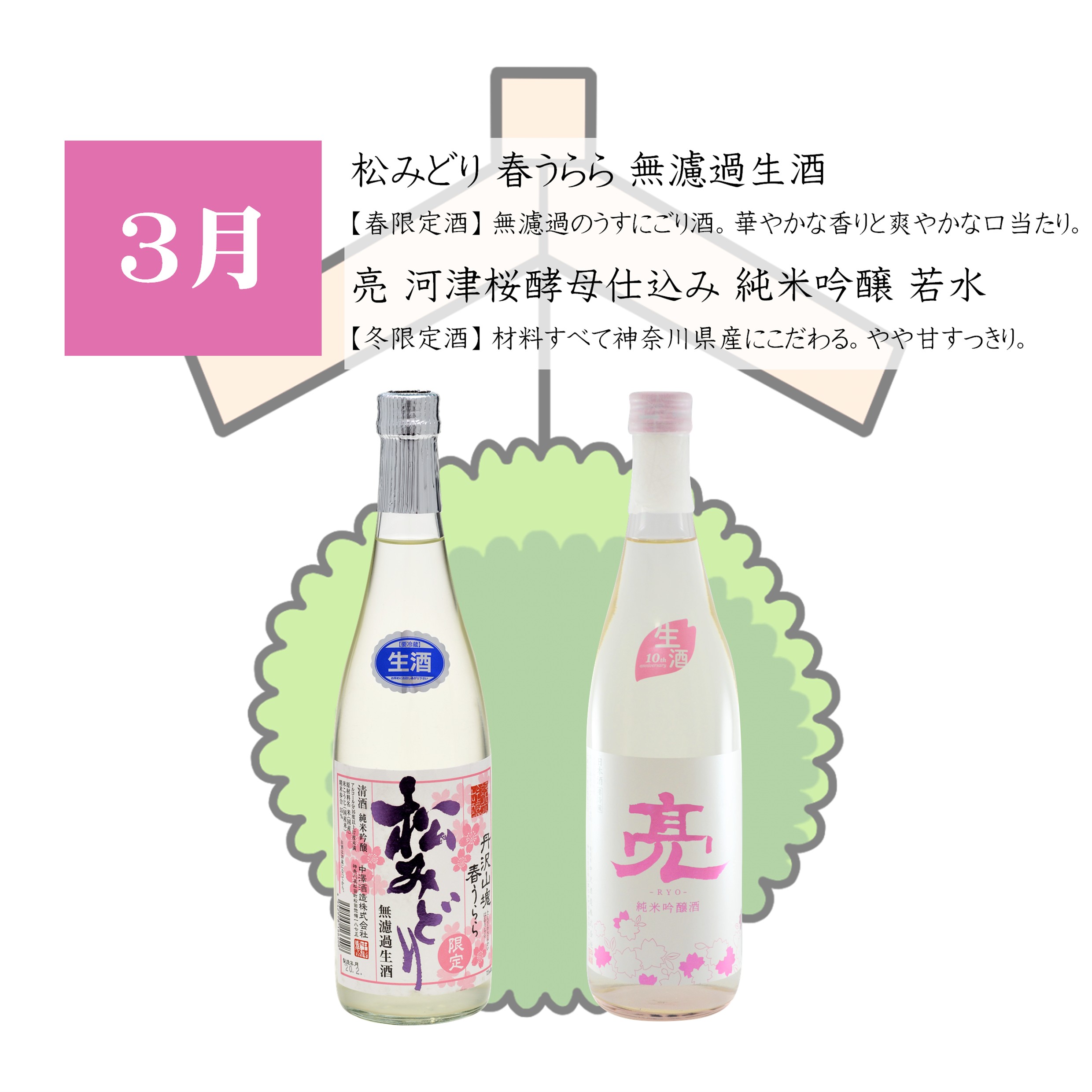 1月~3月までの3カ月間、冬~春にかけてぴったりな日本酒を720mlを2本ずつ定期的にお送りさせていただきます。